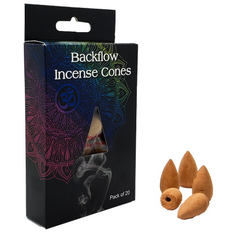 Sandalwood backflow incense cones. The smoke flows downwards in a backflow burner! Sandalwood is earthy, fresh and smooth. The scent is often used to induce a calm and meditative state and has an age-old reputation as an aphrodisiac. Research has shown that exposure to sandalwood stimulates healing properties. The scent is also known to help relieve muscle soreness and indigestion and to help reduce depression. 20 cones come in this pack.