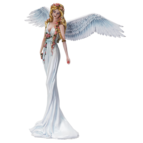 Product #:Flower Angel- A perfect beautiful Angel add to one's collection. This magnificent angel with her wings spread out and hair of gold with lips red as a rose, a floral vine that hang from hair. A beautiful piece makes for a perfect gift or a perfect display in someone's home.