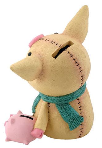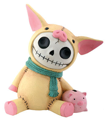 Product #:Furrybones Bacon is a resin figurine featuring the signature skeleton dressed up as a piglet with a piggy bank. This oversized edition functions as a piggy bank as well!