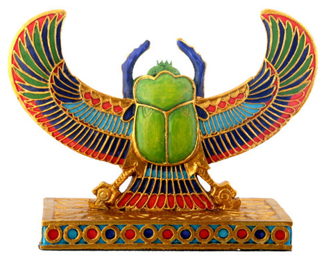 Product #:Decorative scarab pieces were common in ancient Egypt and frequently featured in amulets, talismans, charms and jewelry. Hand painted in a colorful Egyptian palette, this eye catching statuette makes a great centerpiece.